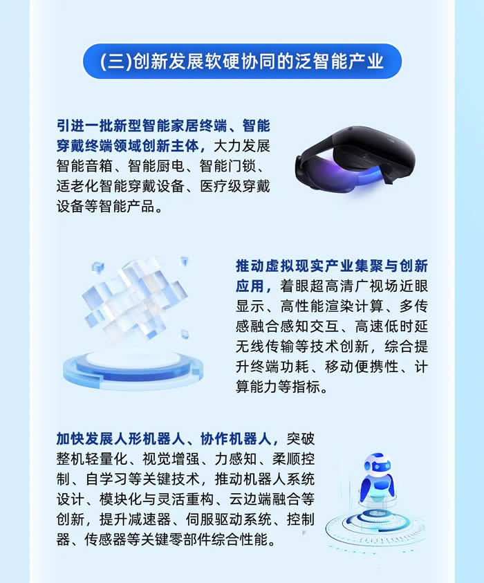 明月湖將引進一批新型智能家居終端、智能穿戴終端領域創(chuàng)新主體,推動虛擬現(xiàn)實產(chǎn)業(yè)集聚與創(chuàng)新應用,加快發(fā)展人形機器人、協(xié)作機器人。