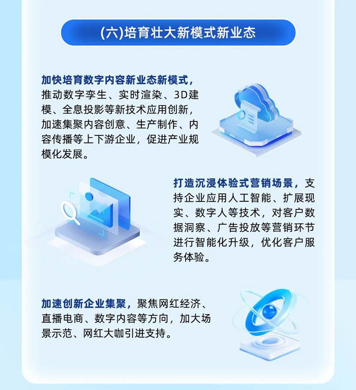 據(jù)了解,《措施》共計二十四條,包括大力發(fā)展六大產(chǎn)業(yè)方向、全面開放五大應用場景,加快構(gòu)建三類數(shù)字基礎設施,創(chuàng)新提供六類服務權(quán)威便捷合規(guī)保障服務、強化四個要素保障措施。