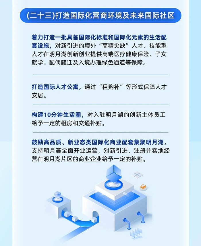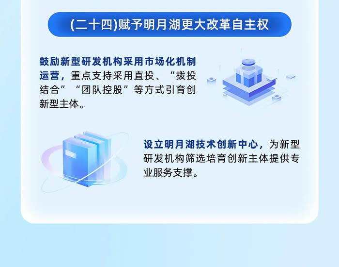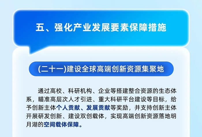 將著力引進一批總部類機構(gòu)、重點孵化培育一批新技術(shù)市場主體、支持發(fā)展一批主導產(chǎn)業(yè)融合創(chuàng)新類企業(yè),構(gòu)建覆蓋企業(yè)成長全過程的明月湖基金體系,給予創(chuàng)新主體貸款貼息支持、投資融資支持,對符合條件的企業(yè)給予上市獎勵等。