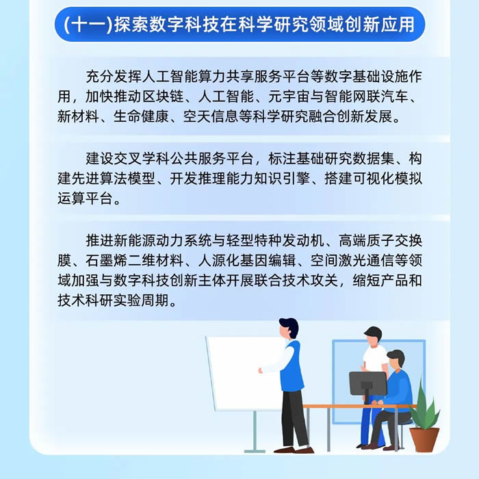 科學研究領域加快推動區(qū)塊鏈、人工智能、元宇宙與智能網(wǎng)聯(lián)汽車、新材料、生命健康、空天信息等科學研究融合創(chuàng)新發(fā)展,建設交叉學科公共服務平臺,推進諸多領域加強與數(shù)字科技創(chuàng)新主體開展聯(lián)合技術(shù)攻關(guān)。