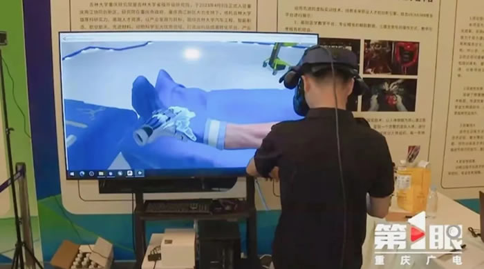 現(xiàn)場瞬間成為媒體關注的焦點,重慶電視臺特別采訪了研究院虛擬仿真技術帶頭人劉子曦,希望進一步了解該技術的應用前景。劉子曦向記者介紹,研究院采用了人工智能的算法,來擬合成這些可以通過虛擬引擎進行交互的影像,除了可以應用在基礎醫(yī)學和臨床醫(yī)學教學方面,還可以應用在醫(yī)院的職業(yè)再教育,讓醫(yī)學生對手術術式進行熟悉,形成肌肉記憶。還能讓病人知道他為什么得病,得了病之后要怎么治療,治療之后可以恢復到什么狀態(tài)。