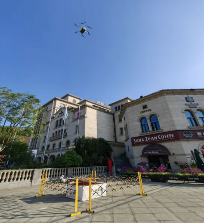 在這里,用無人機送外賣是件稀松平常的事。只需要進入指定小程序,像逛淘寶一樣挑選好飲品,點擊下單,勾選無人機配送。后臺的工作人員便通過飛控系統對無人機下達指令,只需稍等十幾分鐘,無人機就會按著既定航線,帶著貨物飛至停機坪,便可拿取剛“新鮮出爐”的外賣了。